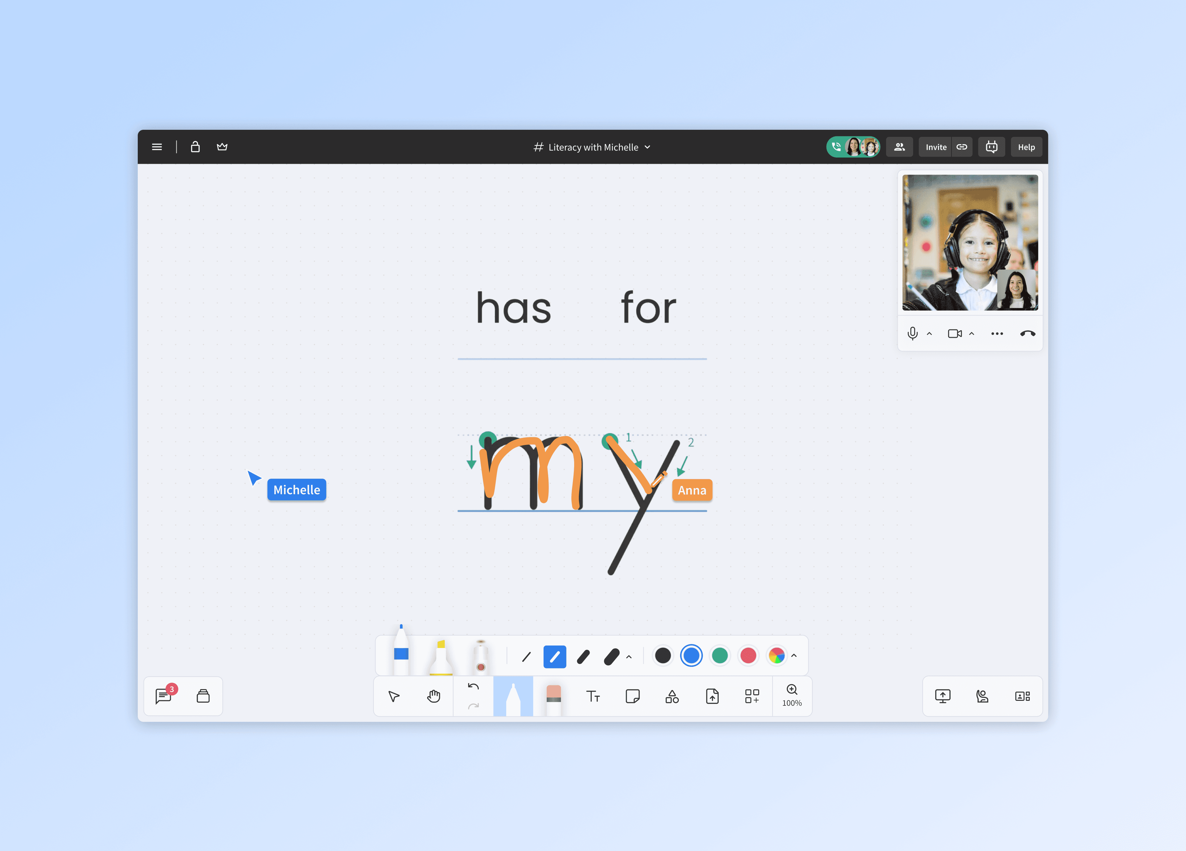 A digital whiteboard to place, share, and work with instructional content.